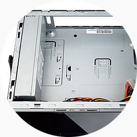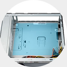 The BQ Series uses an advanced dual layer interior structure design. The spacious interior supports a DVD Drive, Hard Drive, and 3-in-1 Card Reader.
